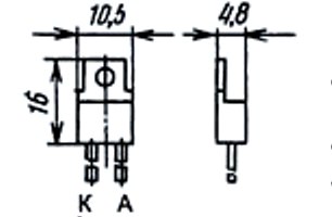 Тип диода и схема соединения электродов с выводами приводятся на корпусе.
