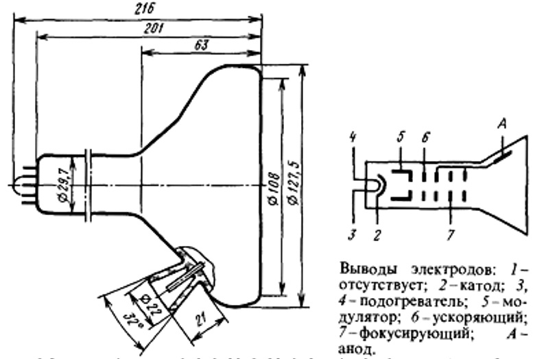 Трубка электронно-лучевая приемная индикаторная монохромная без запоминания.