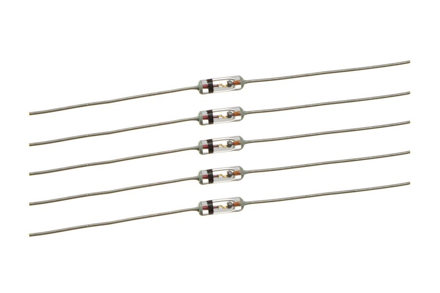 Выпускаются в стеклянном корпусе с гибкими выводами.